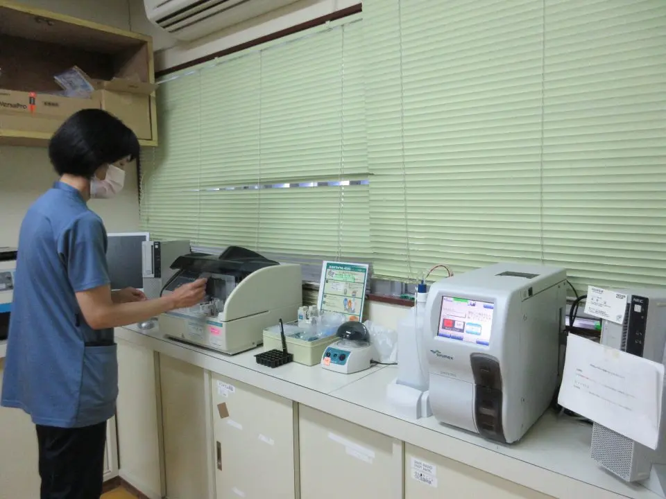 血液検査や尿検査など、さまざまな検体を扱う検査室です。清潔管理はもちろん、迅速な検査結果提供を目指し検査スタッフの動線も最適化。最新の機器と技術で、病気の早期発見・治療方針の決定に貢献します。患者さんの負担を少しでも軽くするため、検体採取時の対応やプライバシーにも気を配っています。